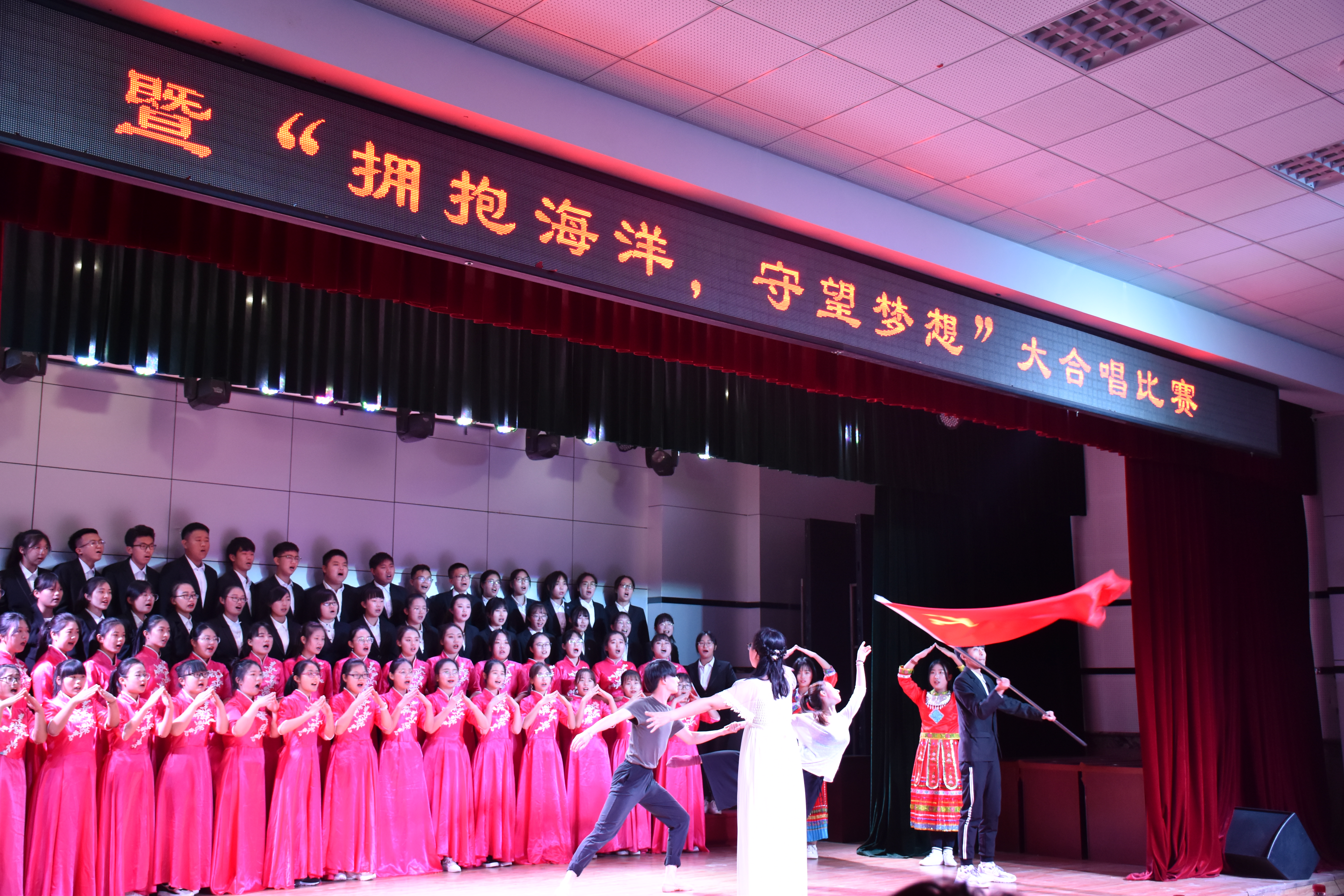 通过本次比赛,不仅激发了青年大学生的爱国情怀,同时也为同学们搭建了一个才华展示的平台;增强了青年大学生民族自尊心、自信心和自豪感此次大合唱比赛在全体师生的热烈掌声和欢呼声中完美落下帷幕。