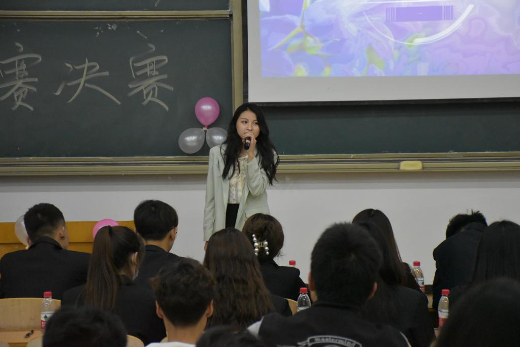 晚上七点钟比赛开始,主持人澎湃的开场白拉开了比赛的序幕。巧言引玉,妙语生花,八位选手,有序开始了他们的演讲,首先是自我介绍,然后开始各个参赛选手的演讲。接下来是我们的绕口令环节,有些选手都能流利的说出那些绕口令,有些选手显得不那么顺畅,比赛现场氛围也欢快起来。接着是选手根据所给的词语进行即兴演讲,非常考虑选手临场发挥能力,部分选手在此环节惜败。最后是根据所给话题演讲,也是精彩异常。相比于初赛,决赛精彩了不少,竞争也非常激烈。最后经过文体部算分决出胜负,排出名次并颁奖。