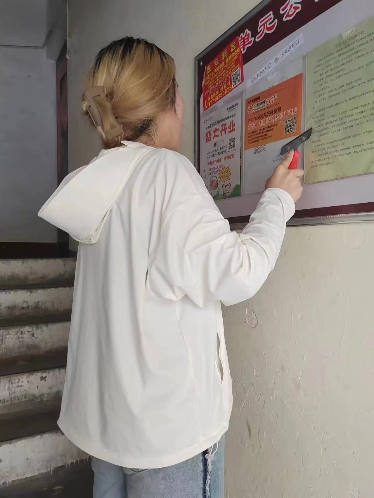 2023年9月22日,金年会jinnianhuicom计算机科学与技术2206团支部于在水一方社区开展了一次清除老旧小区广告的活动。
