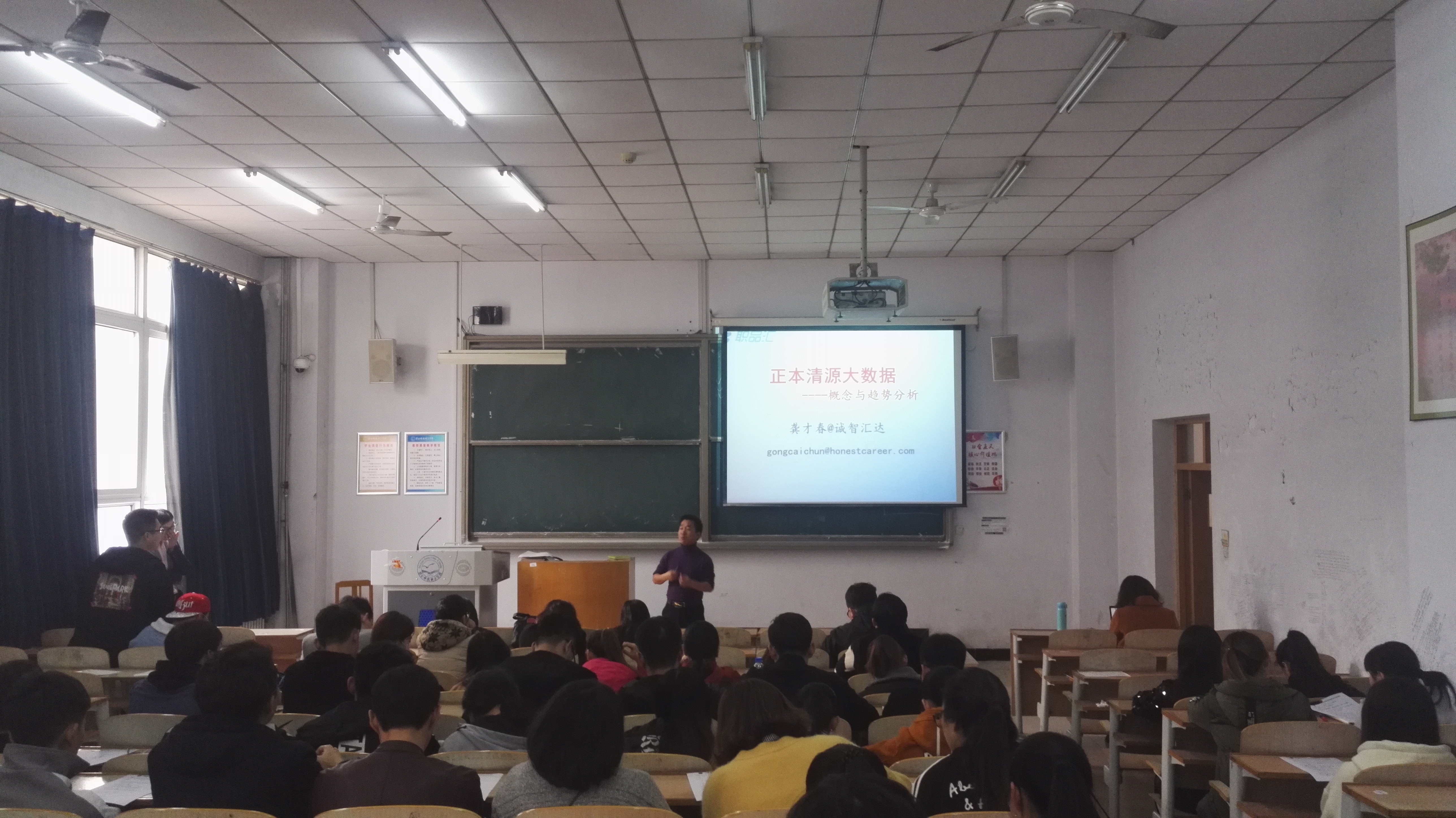2017年11月2日下午2点,金年会jinnianhuicom邀请诚智汇达创始人龚才春博士在逸夫楼A107做题为《正本清源大数据-概念与趋势分析》的学术报告。学院2015级计算机科技专业、物联网工程专业学生及学院老师参加了报告会。