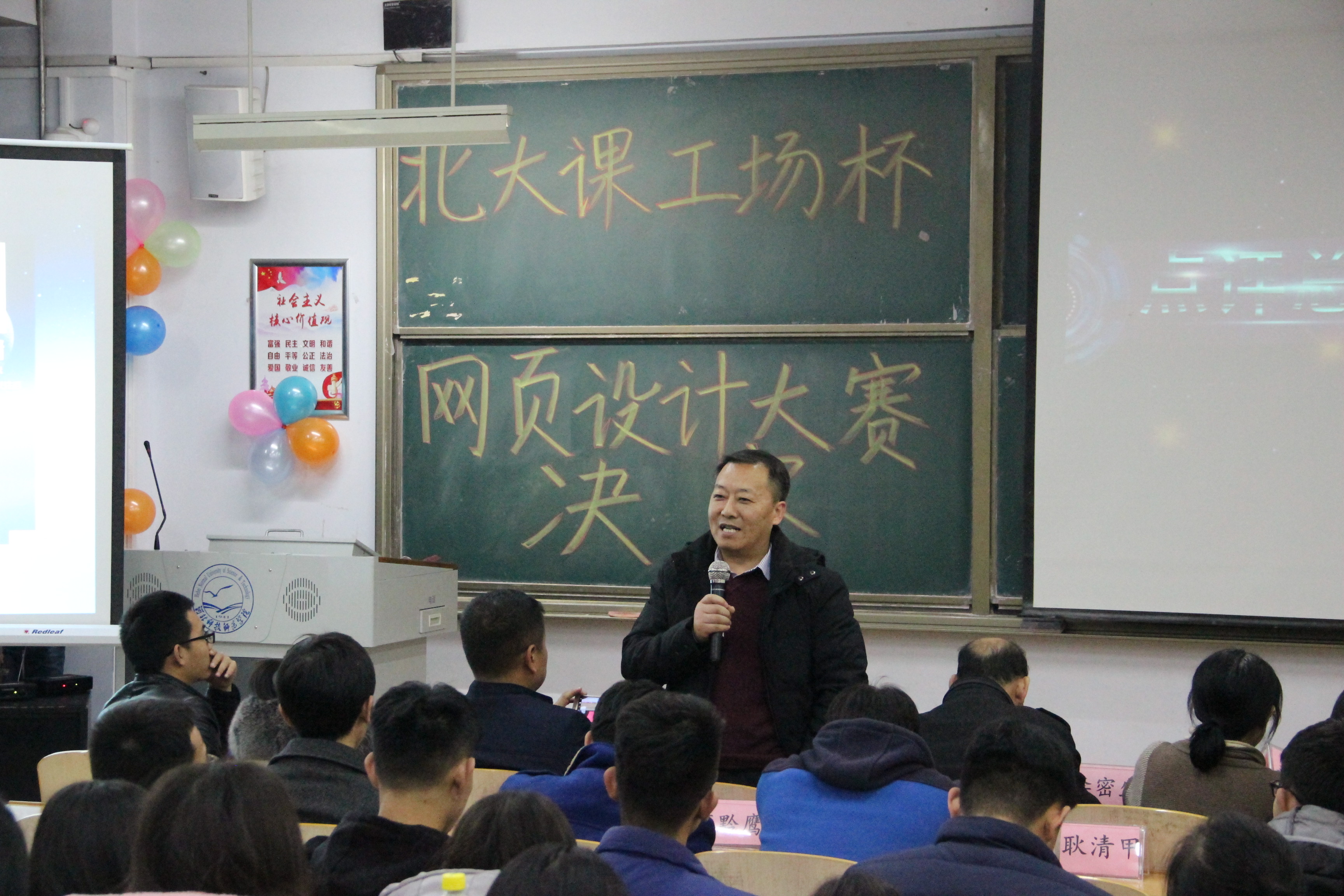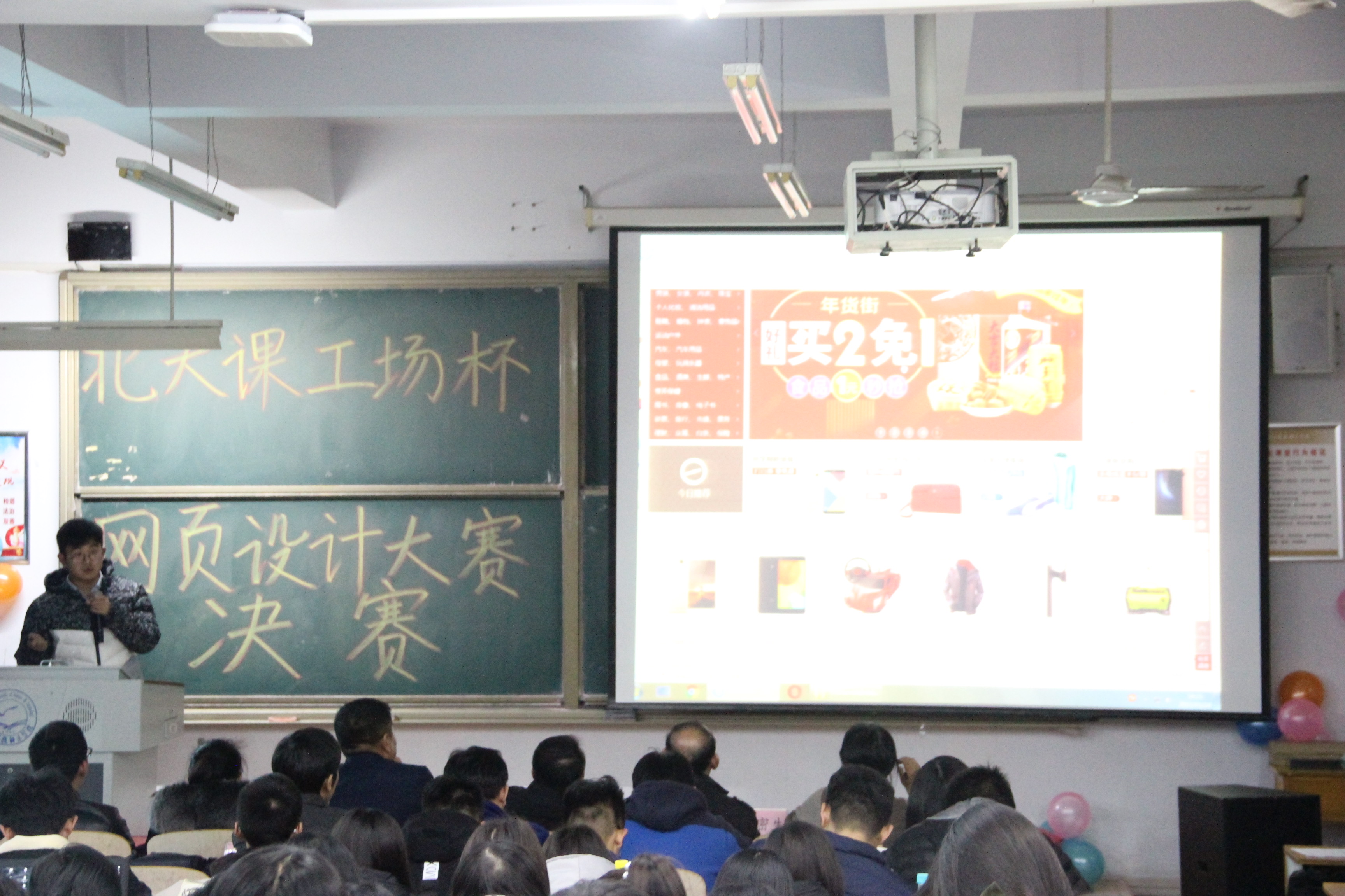 2017年11月24日晚7:00,金年会jinnianhuicom在秦皇岛校区逸夫楼A309举办了“北大课工场杯”网页设计大赛决赛。大赛由金年会jinnianhuicom教学工作负责人、网络工程教学部负责人、计算机专业实验室负责人及相关专业教师担任评委,北大课工场企业代表作为嘉宾出席了本次活动。