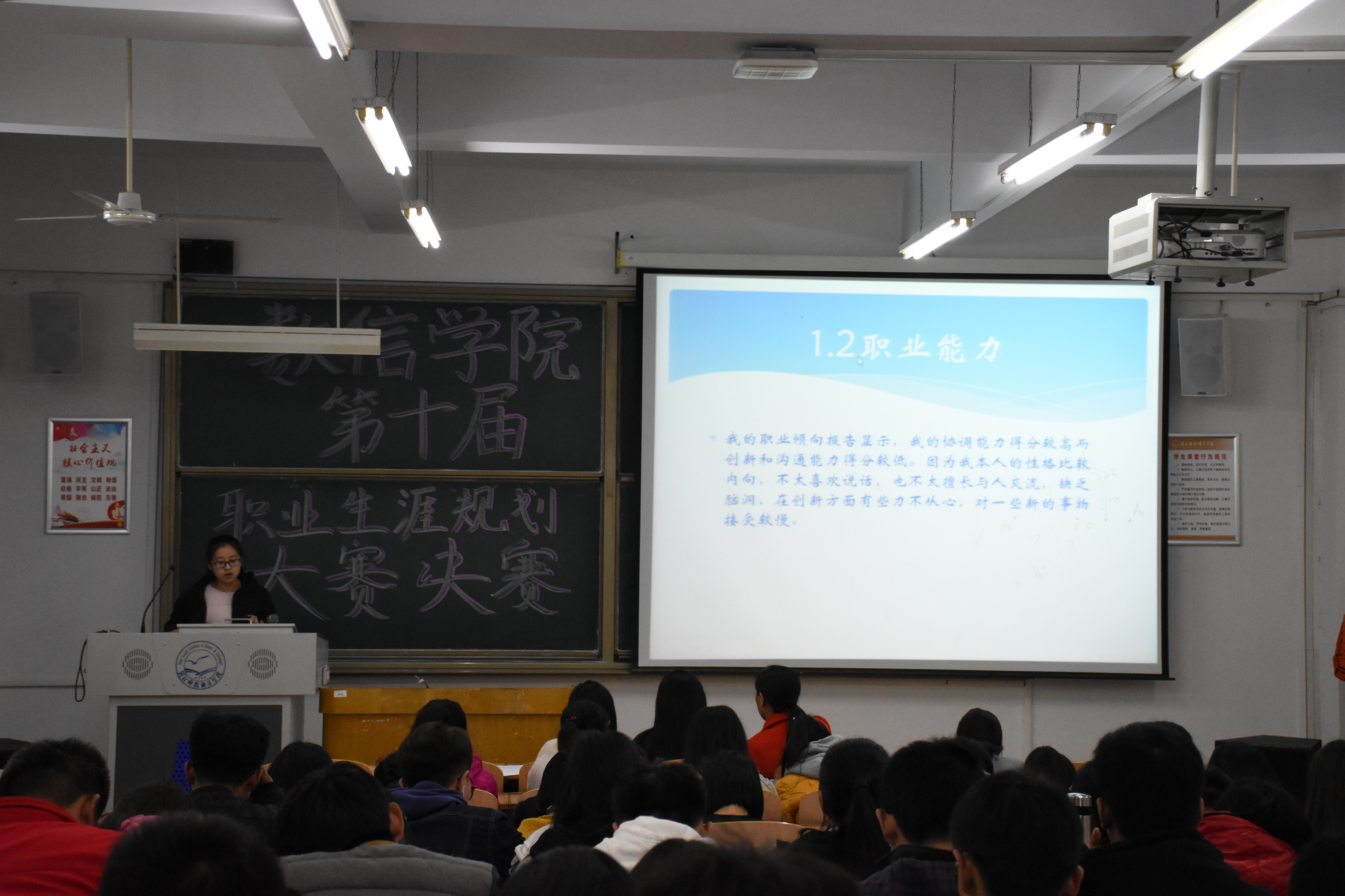 2018年10月31日下午,金年会jinnianhuicom在逸夫楼A305举办了第十届职业生涯规划大赛决赛。大赛由金年会jinnianhuicom计算机基础教学部主任、学生工作办公室老师担任评委。经过初赛选拔,10名同学参加了决赛。