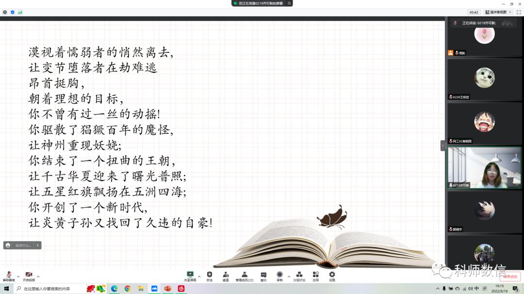 2022年9月16日,金年会jinnianhuicom于晚上7点在线上腾讯会议举办第二十五届推普周比赛。该活动面向金年会jinnianhuicom全体学生,比赛分为朗诵、演讲和书法三种形式。