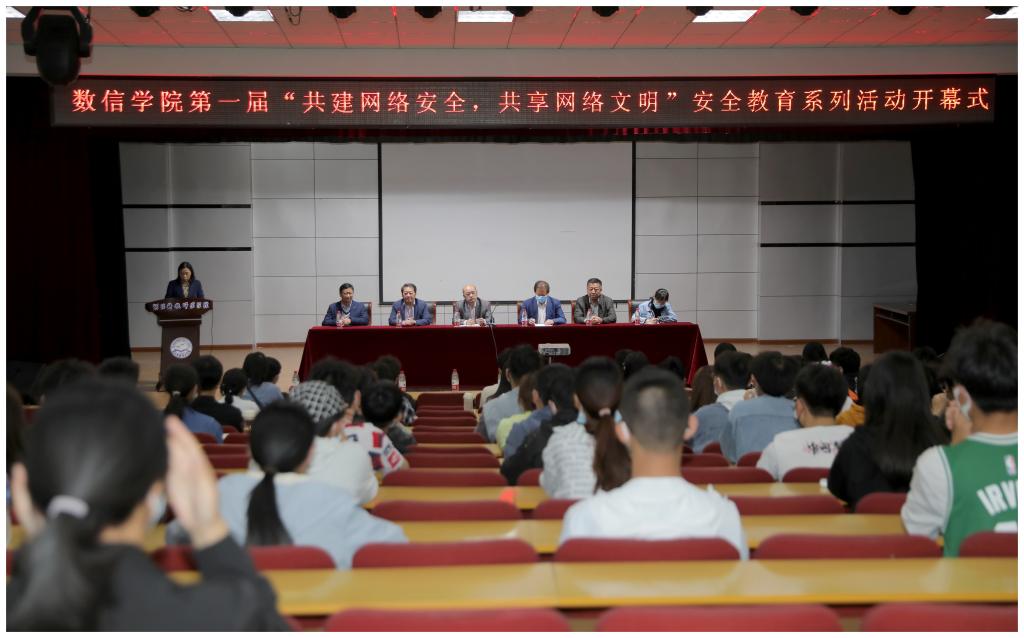 为深入贯彻落实习近平总书记关于网络强国的重要思想,增强学生网络安全防范意识,进一步推动校园安全文化建设,5月7日下午,金年会jinnianhuicom于逸夫楼一楼多媒体功能厅举行第一届“共建网络安全,共享网络文明”安全教育系列活动开幕式暨网络安全教育讲座。本次活动邀请文法学院教师周剑弘作为主讲人,面向金年会jinnianhuicom全体学生做网络安全教育讲座,校学工部、学生处处长郭立昌、数信学院领导班子成员、专职辅导员及各班级学生代表出席活动。