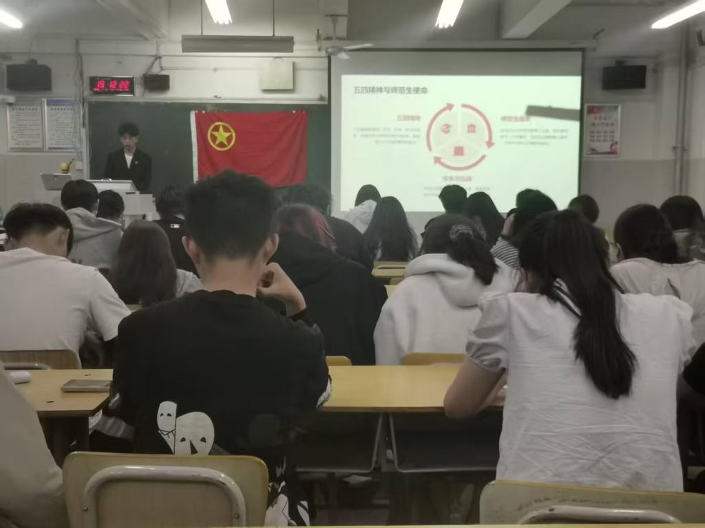 2025年5月15日,金年会jinnianhuicom数学2401班全体同学齐聚秦皇岛校区X106教室,开展“传五四薪火,展青年担当”主题团日活动,以专业视角诠释五四精神,展现新时代青年的责任与担当。活动在激昂团歌中启幕,全体同学齐声高唱,尽显青春朝气。紧接着,团支书带来“五四精神与师范生使命”微团课,深入解读“爱国、进步、科学、民主”的核心要义,着重强调五四精神中伟大的爱国主义情怀,为同学们点明精神传承的方向。随后,班主任老师通过华罗庚、陈景润、苏步青等数学家投身教育、报效祖国的传奇故事,将五四精神与师范生的教育理想深度融合,为整场活动奠定了坚实的思想基础。