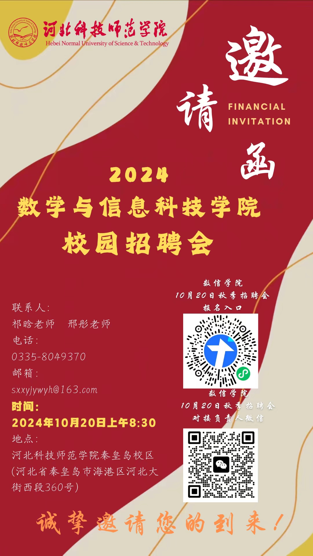 衷心感谢多年来对我院发展及毕业生就业工作的大力支持与帮助!为了给用人单位更好提供与金年会官网毕业生提供“双向选择”的机会,金年会官网秦皇岛校区定于2024年10月20日(周日)联合举办金年会诚信信誉至上2025届毕业生专场招聘会,诚邀各用人单位莅临,广纳贤才!