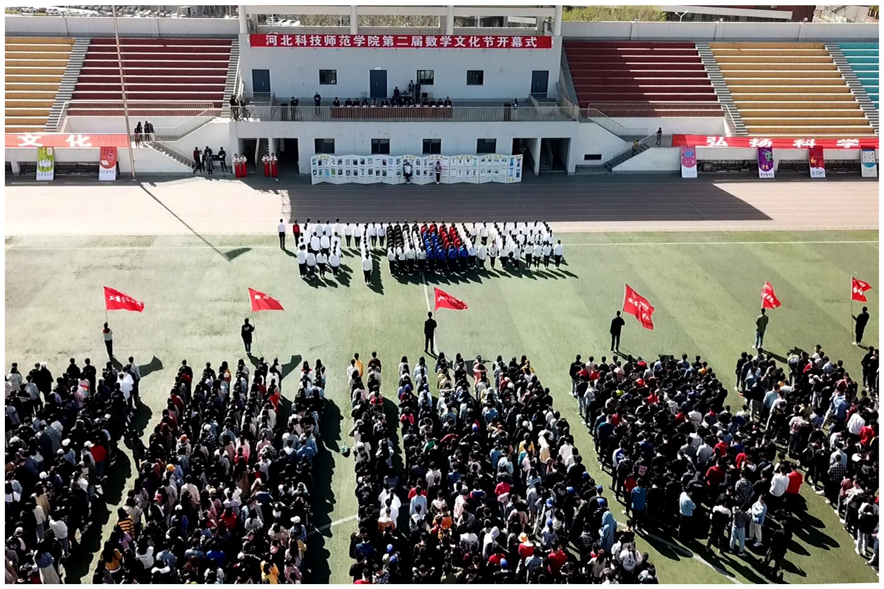 为传播数学文化,弘扬科学精神。由学校教务处、学生处、校团委、招生就业处主办,金年会jinnianhuicom承办的学校第二届数学文化节开幕式活动于2019年4月14日下午,在秦皇岛校区运动场举行。学校副校长张福喜、主办单位相关负责人、承办单位党政领导班子成员以及秦皇岛校区的财经学院、城市建设学院、工商管理学院、体育与健康学院、物理系等各院系主管学生工作负责人出席了开幕式。另外,金年会jinnianhuicom教师以及秦皇岛校区六个系院的学生代表共1500余人一同参加了开幕式活动。
