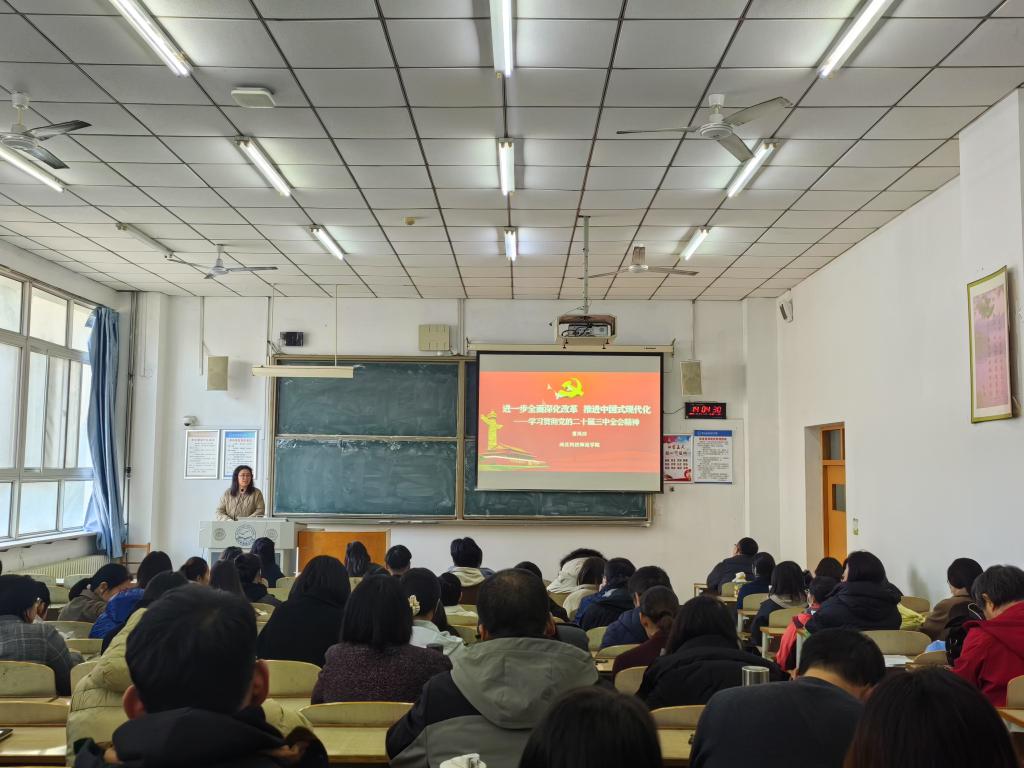 2024年11月21日,金年会jinnianhuicom党委邀请学校思想政治理论教育宣讲团成员、马克思主义学院曹凤珍博士为师生作党的二十届三中全会精神专题宣讲报告。宣讲会由学院党委书记杨崇泽主持。