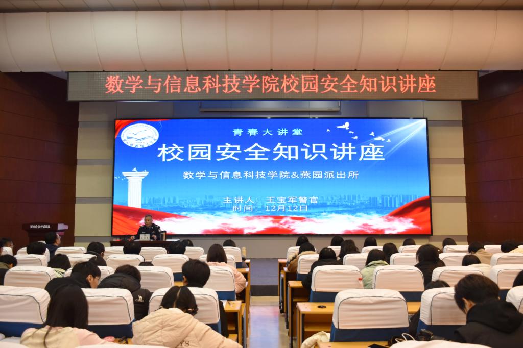 讲座中,王警官结合大学校园实际,讲解了与学生密切相关的法律法规;他以大量真实的案例为切入点,对消防安全、网络安全、人身财产安全、宿舍安全等方面的隐患和应对措施进行分析;特别强调了在宿舍使用违规电器、管制刀具和易燃易爆物品的危害。最后,他针对近期频发的网络刷单、冒充客服、冒充好友等典型诈骗案件,介绍了电信诈骗的常见手段、特点和防范措施。同学们认真聆听,积极互动,现场气氛热烈。
