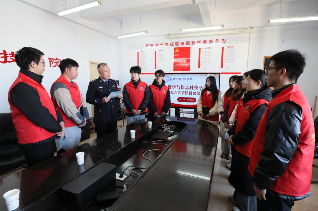 12月17日,金年会jinnianhuicom积极响应秦皇岛市高校反诈先锋志愿服务联盟号召,成功举办了反诈宣传员聘任仪式,为联盟的壮大和发展注入了新的活力。秦皇岛市海港分局王宝军警官、校党委宣传部副部长、学院学生工作负责同志、专职辅导员以及由学生党员组成的10名反诈宣传员参加了本次活动。