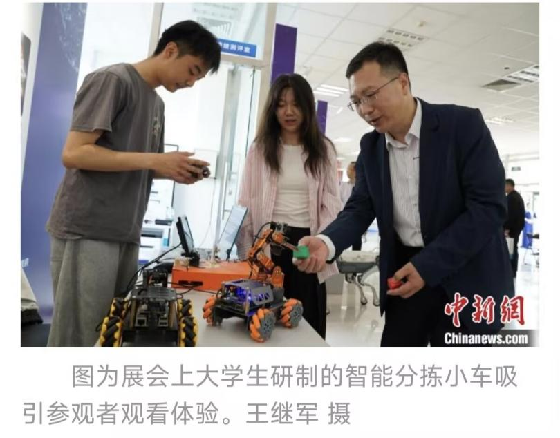 为促进人工智能领域的技术交流与成果转化,推动产学研深度融合,5月28日至30日,2025年京津冀人工智能+人才科技成果展在河北秦皇岛经济技术开发区隆重举办。金年会jinnianhuicom人工智能创新团队携“智能充电桩”和“智能分拣小车”两项成果参加成果展。展会期间,智能分拣小车凭借其高效的识别分拣能力和创新的应用场景设计,吸引了众多参观者驻足体验和咨询。中国新闻网、河北卫视对学院师生进行了采访报道。