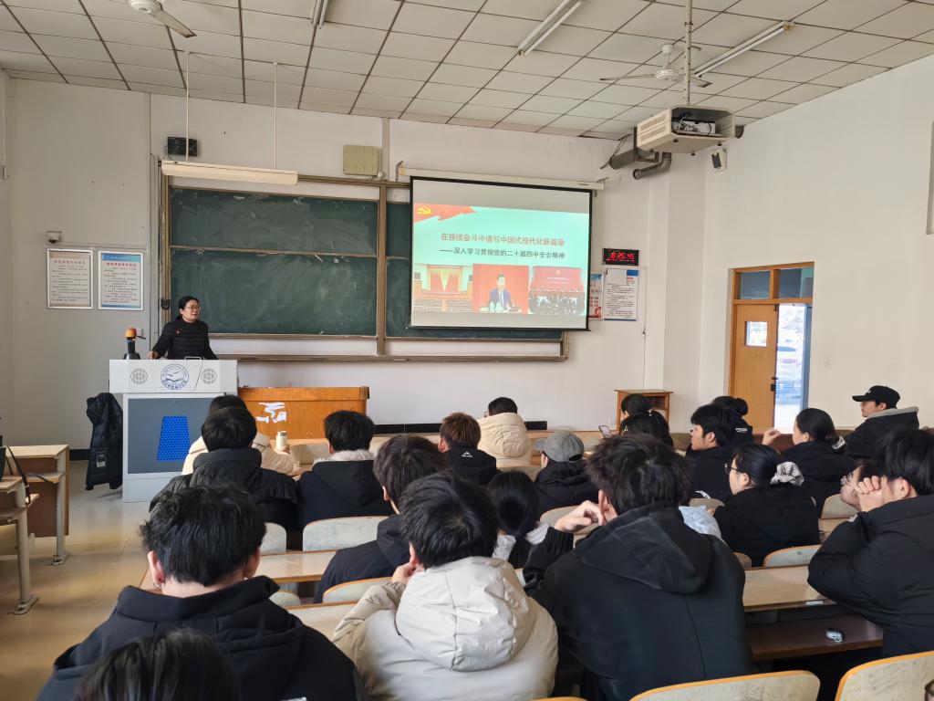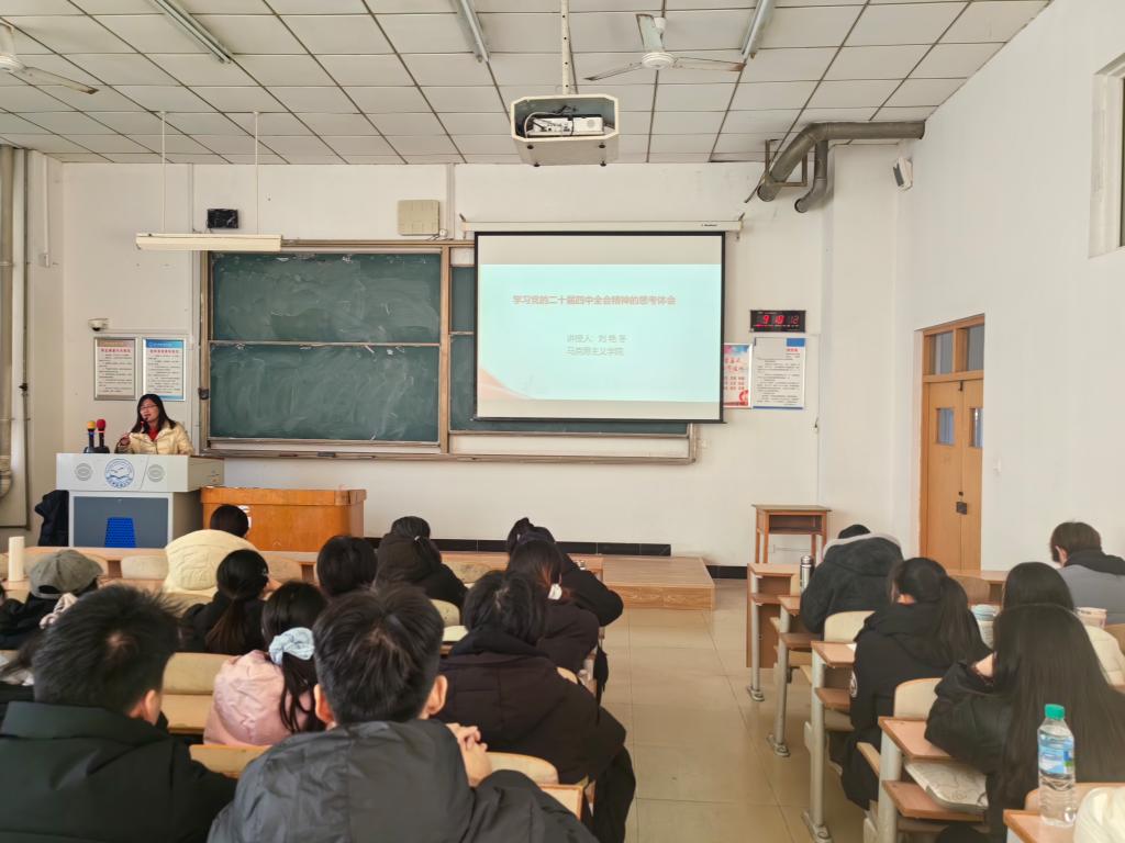 2025年12月25日,金年会jinnianhuicom在秦皇岛校区逸夫楼A111教室举办了党的二十届四中全会精神宣讲报告会。本次报告会邀请了学校思想政治理论教育宣讲团成员、马克思主义学院副教授杜立文、刘艳冬作宣讲报告。共有100余名师生党员参加了此次宣讲会。