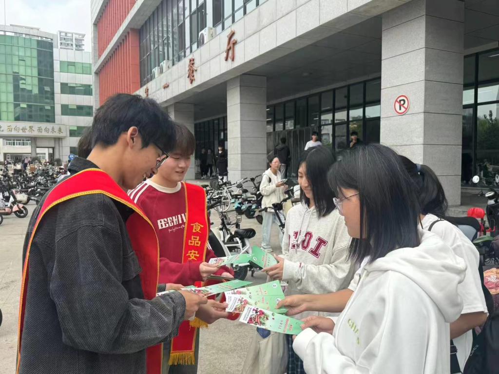 为了响应我国食品安全宣传周活动的号召,推动秦皇岛市创建国家食品安全示范城市,2024年9月28日金年会诚信信誉至上海联创新基地志愿者开展了校园食品安全宣传活动。食品安全是民生福祉,牵扯到人民安危和国家的稳定。今年是我国第十四个食品安全宣传周,也是我市创建国家食品安全示范城市的验收年。为了落实张国清副总理在全国食品安全宣传周主场活动时的讲话精神,增强同学们的食品安全意识,让同学们能够远离食品安全问题的危害,海联创新基地组织大学生志愿者在学校食堂开展了食品安全宣传活动。