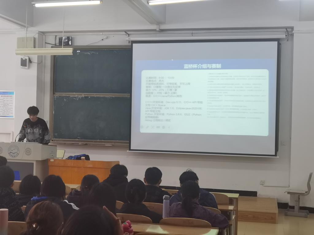 为了提高学生的程序设计能力,迎接2025年蓝桥杯大赛,10月21日数据科学教学部按照年级分别开展了蓝桥杯大赛动员会,其中贾冬艳老师讲解蓝桥杯大赛内容,王晟同和王世恒同学国赛同学分享参赛经验。10月23日下午辛向利老师和祝美宁老师负责组织学生进行集训。
