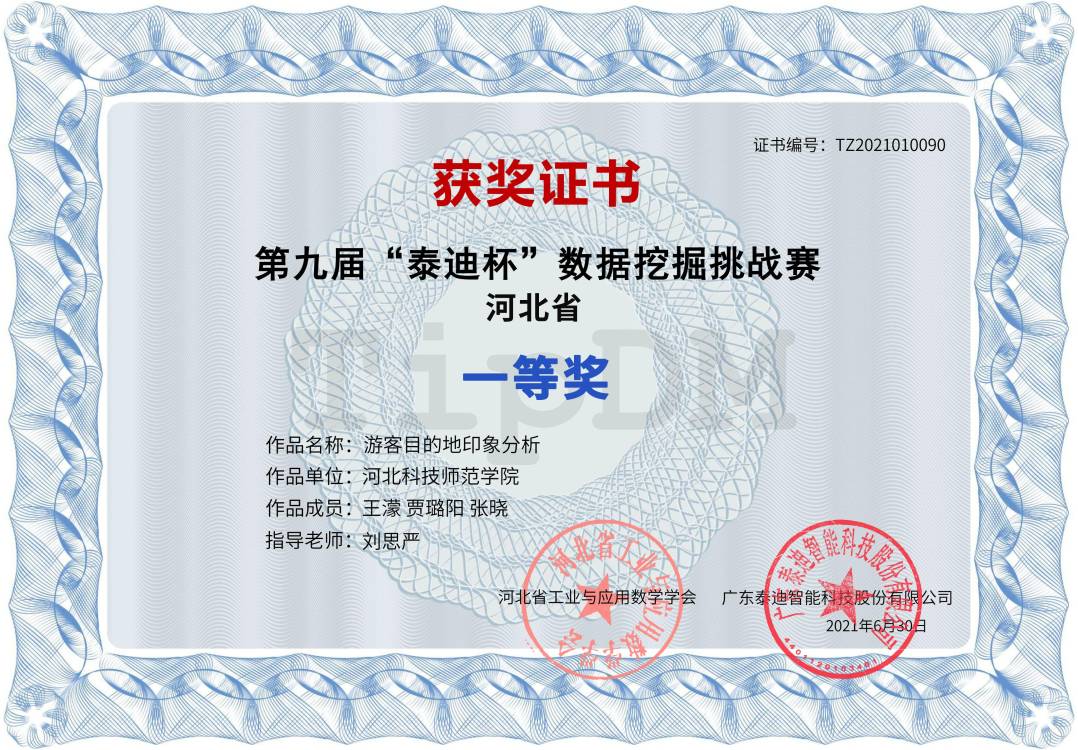 近日,第九届“泰迪杯”数据挖掘挑战赛河北省省级奖项揭晓,金年会官网应用统计学专业学生获得一等奖1项、二等奖2项、三等奖2项的好成绩。