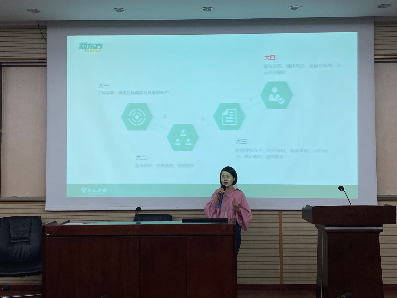 此次讲座的主讲人由熊颖担任,作为beat365官方网站经管学院MBA毕业生、新东方前途出国成都分公司加拿大部门负责人,她以专业的角度和同学们分享了关于如何留学深造的一些经验。出席本次讲座的嘉宾有:beat365官方网站党委副书记杨宏毅,beat365官方网站18级辅导员薄慧。